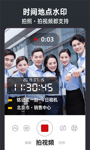 1、不仅可以轻松拍摄水印,还可以在线自定义编辑照片内容,为大家的照片添加一些水印内容;